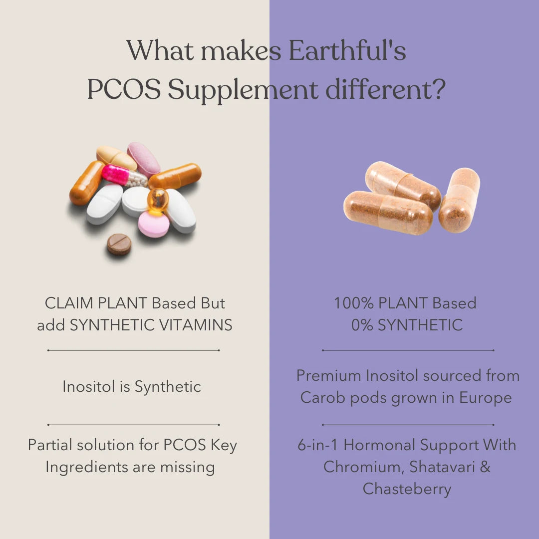 Earthful's HerSupport Supplement is all in one solution with Inositol, Shatavari, Cinnamon and other nutrients that are essential for hormonal balance. We use the highest quality of Insositol that is sourced from Europe. Our formula also contains Chromium aids in the maintenance of normal glucose metabolism and might help is reducing androgens. All ingredients work together to support normal menstrual wellness, aid reproductive health, and contribute to healthy skin appearance.
