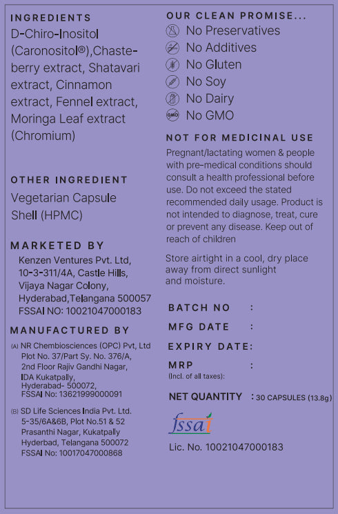 Diet, Lifestyle & Genetics are the root causes of PCOS. Our PCOS Balance Inositol + Chasteberry helps bring about Hormonal Balance & Restore your Menstrual cycle. Continue to use the capsules on a daily basis for 3-4 months and notice how your cycle improves.