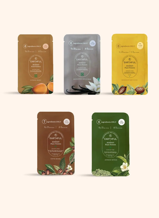 Net Weight: 6 x 42 g, 2 x 37 g, 2 x 36 gHonest Plant Protein - Assorted Pack1000 reviewsMRP Incl. of all taxesRegular price Rs. 1,324.00Regular price7% OFFUnit price / perRs. 1,426Sale price Rs. 1,324Sale -