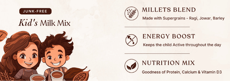Nutri drinks, like Earthful Kids Millet Mix, are an excellent way to provide children with the additional nourishment they need to stay healthy and active. Unlike other health drinks, our Millet Mix is plant-based, free from artificial flavors and preservatives, making it a safe and effective option for children. Additionally, it is rich in fiber and contains no refined sugar.