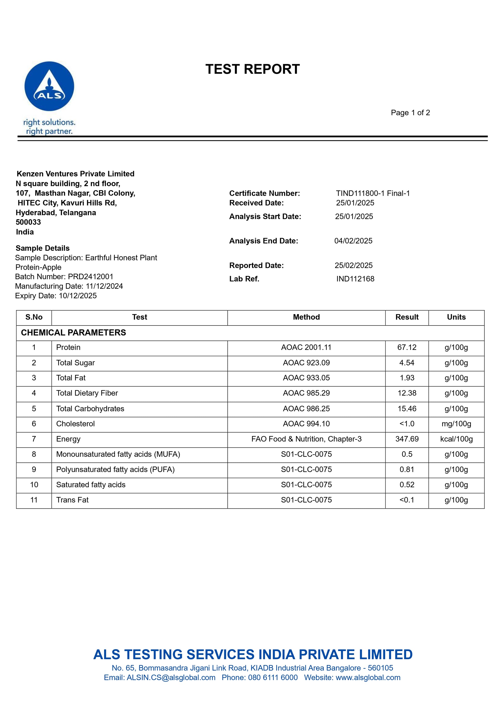 Earthful's Plant Protein is the only Protein with all the 9 essential Amino acids & 11 Non Essential Amino Acids that are needed by our Body. The Protein is sourced from Pea & Brown Rice. This powerful blend also contains Ajwain Powder which make digestion easier & you need not worry about bloating. There are also brands which call themselves “Plant-Based'' but when you look at the back of the pack you will find that synthetic ingredients are being used. On the other hand, we clearly list the sources for you to understand. The ingredients are always kept transparent for you so that you don’t need to worry about the side-effects of synthetic ingredients by consuming Earthful.