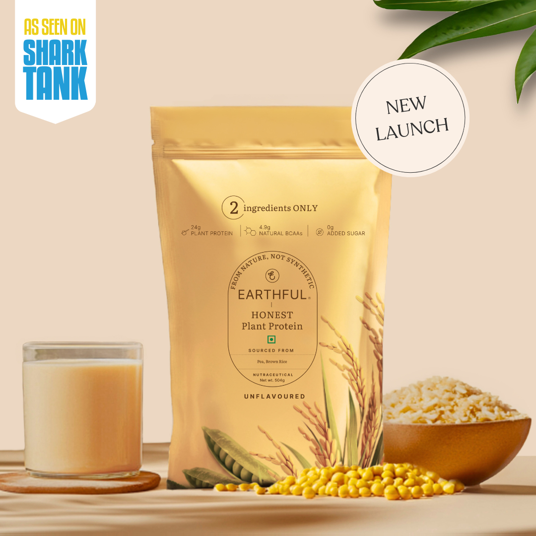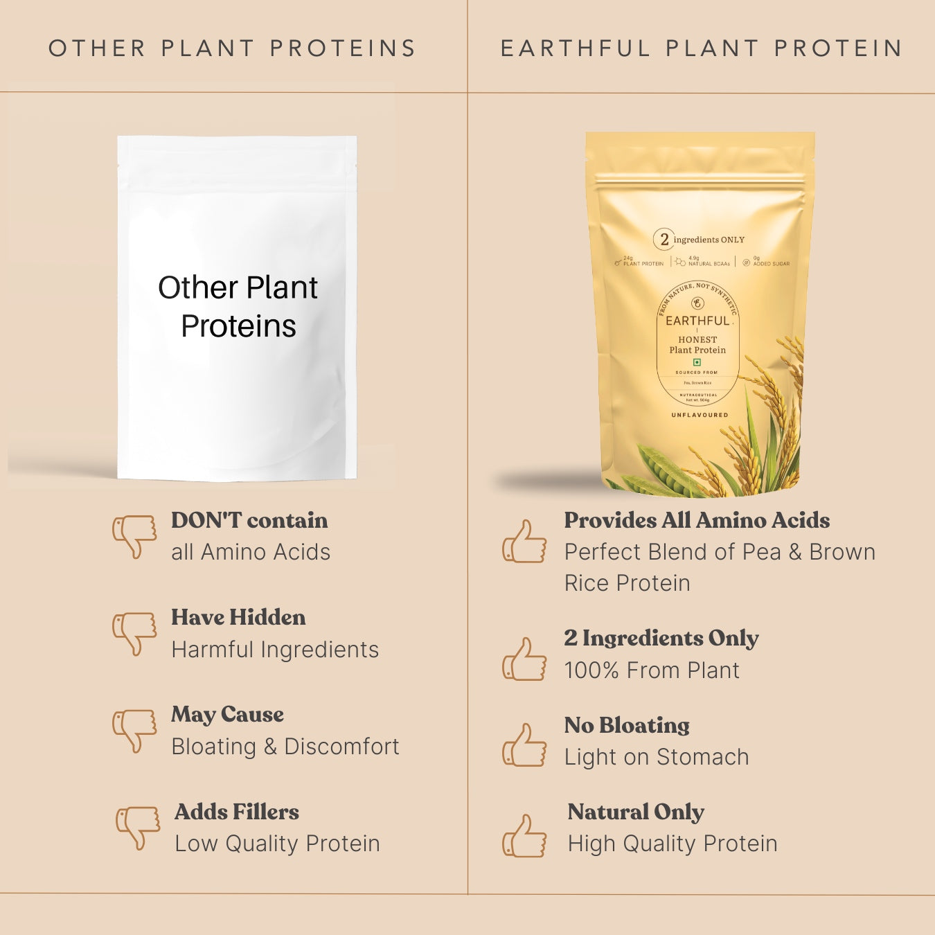 Earthful's Clean Plant Protein is the only Protein with all the 9 essential Amino acids & 11 Non Essential Amino Acids that are needed by our Body. The Protein is sourced from Pea & Brown Rice. There are also brands which call themselves “Plant-Based'' but when you look at the back of the pack you will find that synthetic ingredients are being used. On the other hand, we clearly list the sources for you to understand. The ingredients are always kept transparent for you so that you don’t need to worry about the side-effects of synthetic ingredients by consuming Earthful.