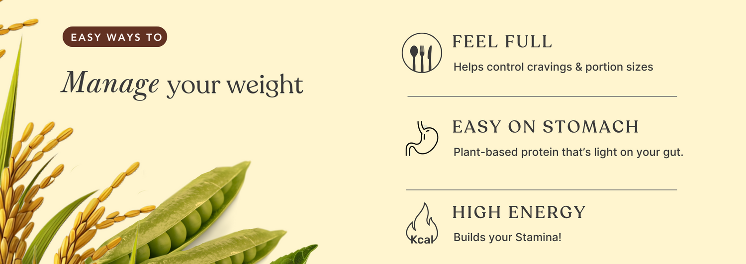 Whey Protein can cause stomach issues like bloating. Whereas, Plant Protein is free of lactose and you need not worry about bloating. Additionally, it's easier to digest and helps you feel fuller longer.