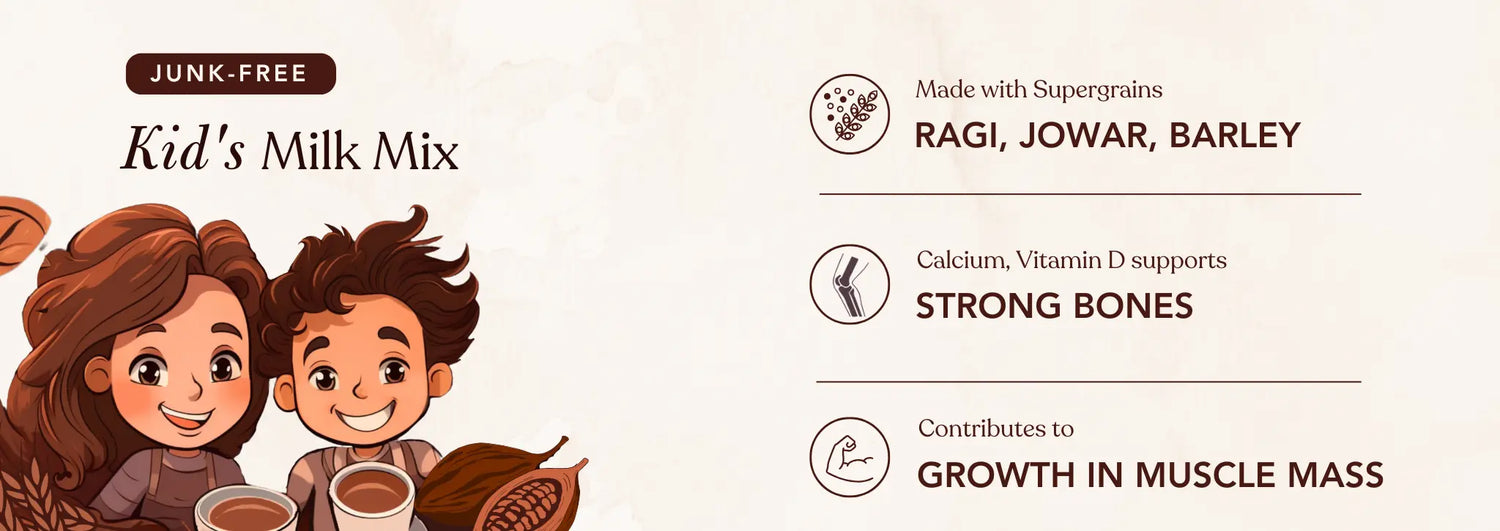 Nutri drinks, like Earthful Kids Millet Mix, are an excellent way to provide children with the additional nourishment they need to stay healthy and active. Unlike other health drinks, our Millet Mix is plant-based, free from artificial flavors and preservatives, making it a safe and effective option for children. Additionally, it is rich in fiber and contains no refined sugar.