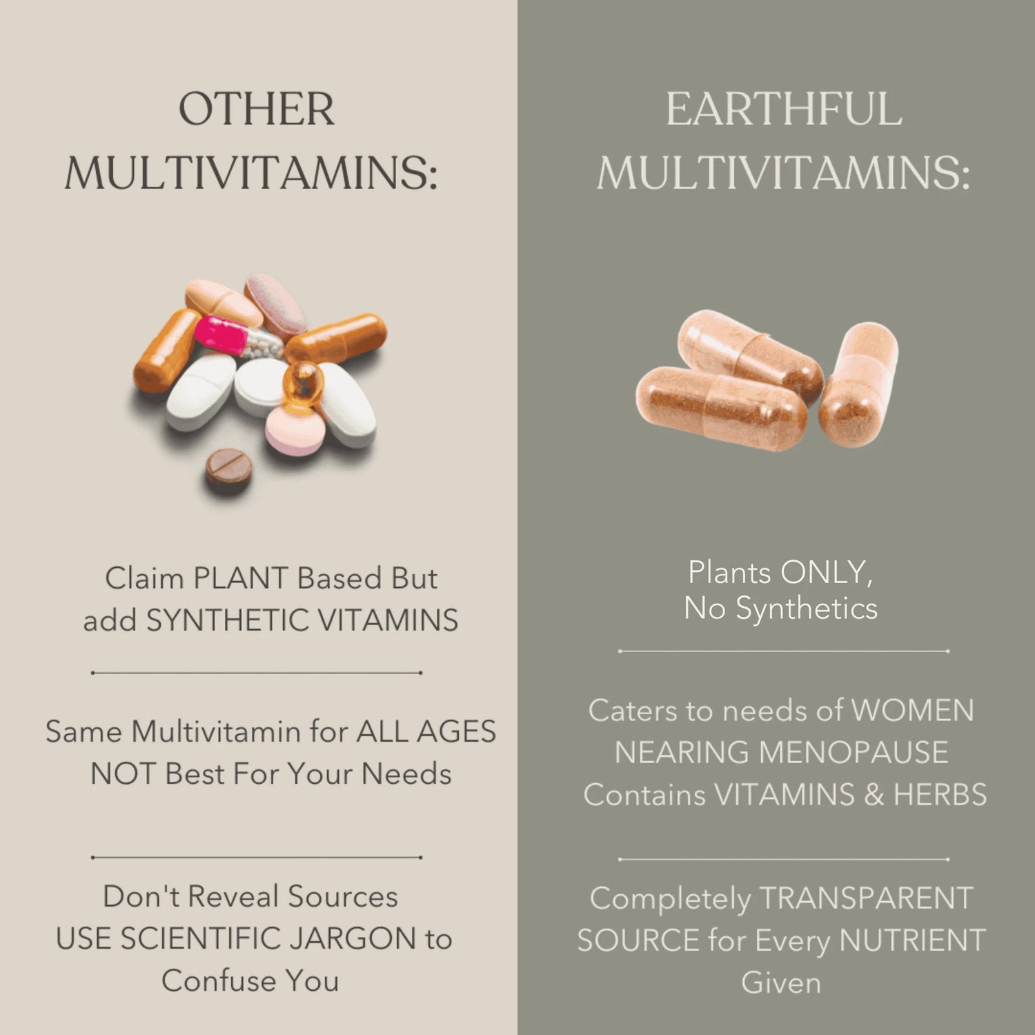 Along with the active herbs like Shatavari, Gokshura, we have also added several vitamins and minerals sourced naturally to ensure your overall well- being. Earthful is the only reliable brand in the market which makes multivitamin from plants only. There are brands which call themselves “Plant-Based'' but when you look at the back of the pack you will find that synthetic vitamins are being used. On the other hand, we clearly list the sources of the vitamins for you to understand. The ingredients are always kept transparent for you so that you don’t need to worry about the side-effects of synthetic ingredients by consuming Earthful.
