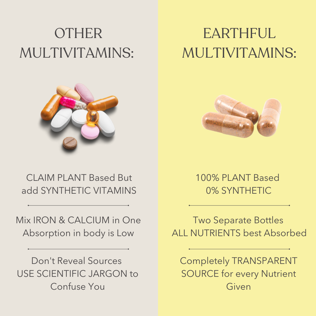 Earthful is the only reliable brand in the market which makes multivitamin from plants only. There are brands which call themselves “Plant-Based'' but when you look at the back of the pack you will find that synthetic vitamins are being used. On the other hand, we clearly list the sources of the vitamins for you to understand. The ingredients are always kept apparent for you so that you don’t need to worry about the side-effects of synthetic ingredients by consuming Earthful.